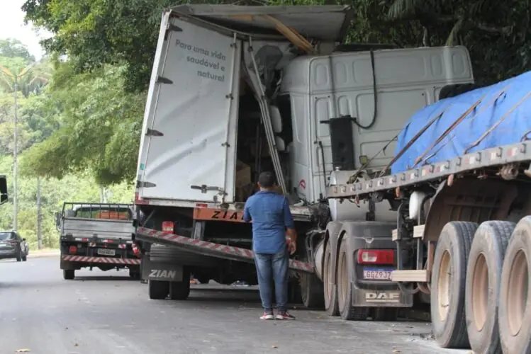 De acordo com sargento Belmonte, da 20° Companhia Interativa Comunitária (Cicom), no momento do sinistro, o trânsito na avenida estava carregado, quando na descida da pista o caminhão carreta, de placa GGZ-9J74, perdeu o controle dos freios, tentou jogar o veículo para o acostamento, mas acabou atingindo o caminhão baú, de placa PHW-8G72, destruindo parcialmente o baú e a carga transportada.