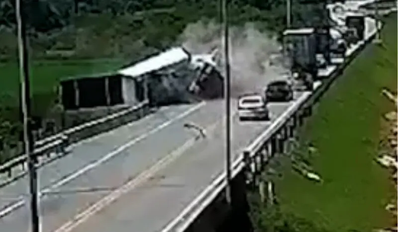As investigações iniciais indicam que o caminhão, que transportava areia, não conseguiu frear ao se deparar com um congestionamento na rodovia.