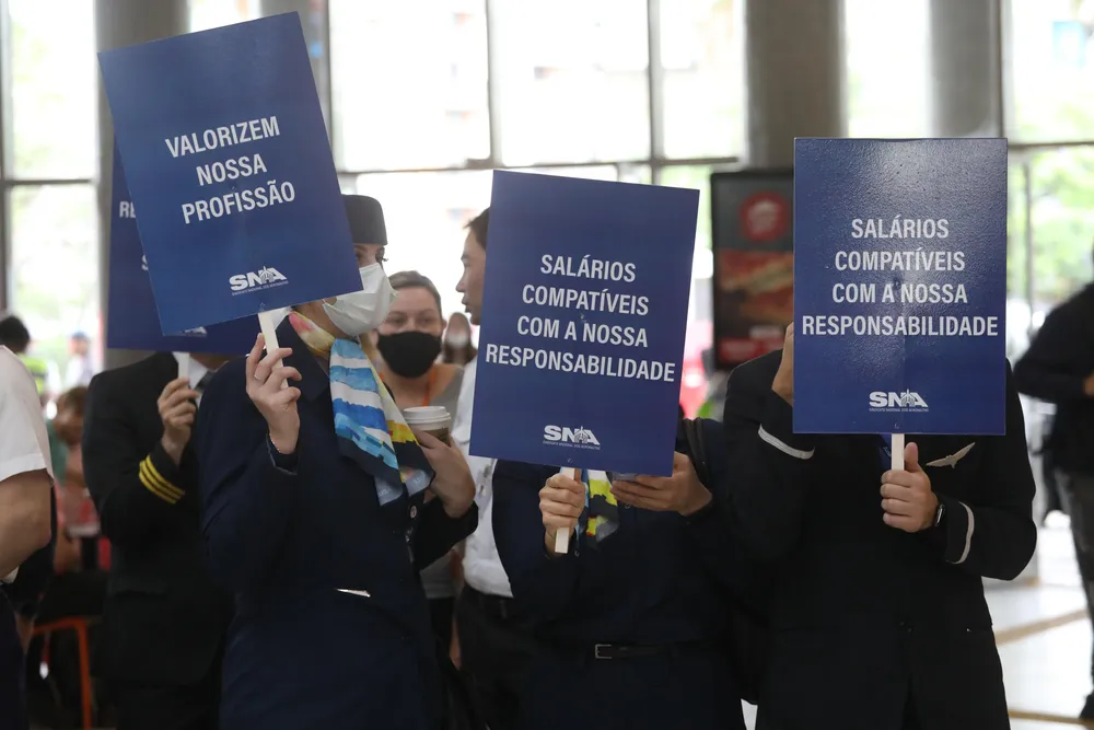 Em uma assembleia online que começou no final da tarde desta quinta-feira (22) e terminou à meia-noite, os aeronautas rejeitaram proposta das empresas e decidiram manter a paralisação iniciada na última segunda (19).