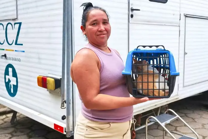 Tutora com seu animal de estimação aguardando atendimento no CCZ — Foto: Divulgação