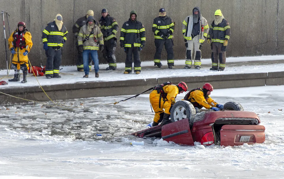 Carro deslizou na pista em Seattle, nos EUA, em 24 de dezembro de 2022 — Foto: Kevin Clark/AP