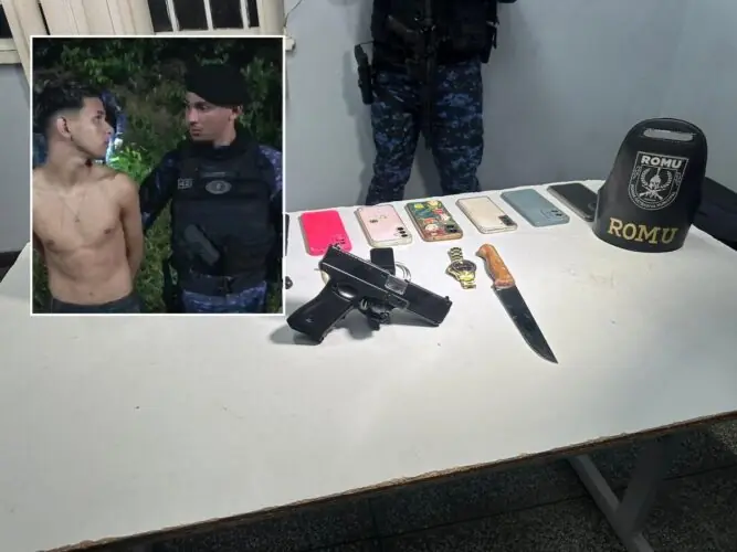 Criminosos atacaram passageiros na avenida Margarita, mas foram surpreendidos durante patrulhamento da Ronda Ostensiva Municipal (Romu)