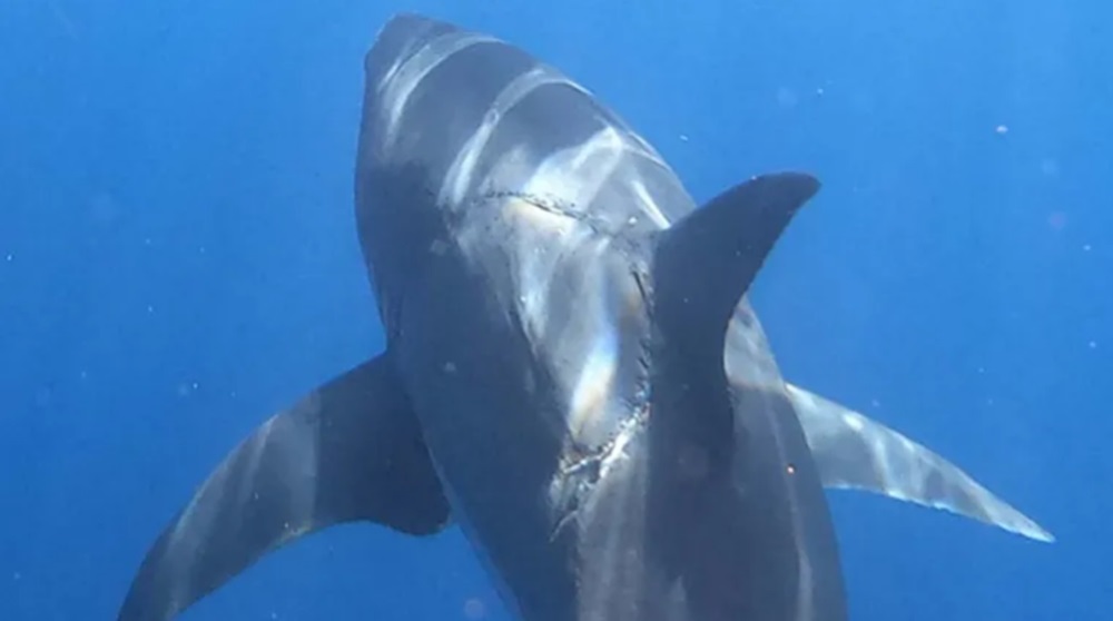 Eu sei com certeza que quando vejo algo estranho, nunca vi uma cicatriz de tubarão tão grande.