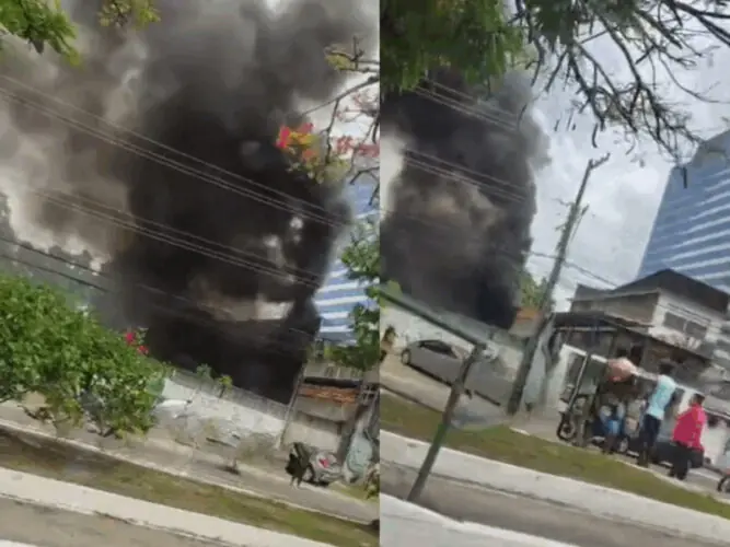 Equipes do Corpo de Bombeiros Militar do Amazonas (CBMAM) foram acionadas e precisaram pular o muro do terreno para conter as chamas.