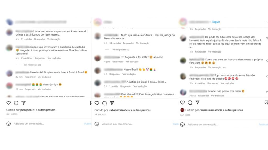 Nas redes, a notícia da liberação repercutiu e pessoas pediram Justiça pela vítima. “Ela pode ter sido solta pela Justiça, mas aquela justiça lá de cima tarda, mas não falha. A lei do retorno. Tudo que se faz aqui de ruim, vem em dobro”, comentou uma pessoa no Instagram.