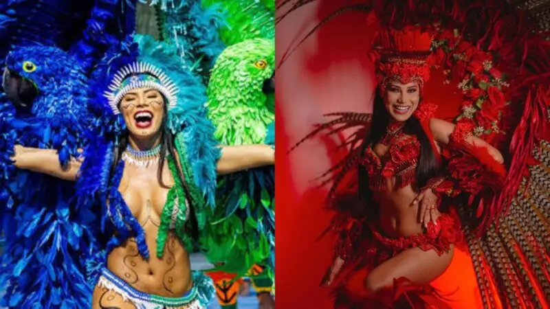 Já Lívia Cristina representa o Boi Garantido como Rainha do Folclore e tem uma trajetória consolidada no festival, tendo atuado também como Porta-Estandarte do boi vermelho e branco em edições anteriores.