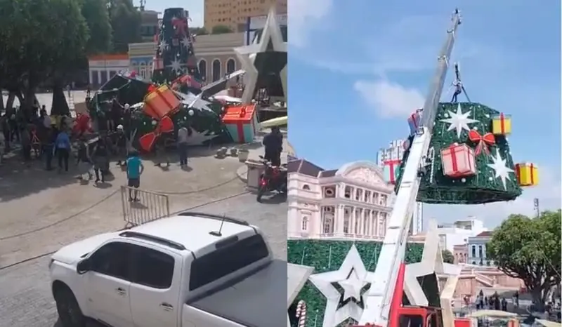 Manaus – O guindaste que levantava a árvore de Natal no Largo de São Sebastião, no Centro de Manaus, desabou na manhã deste domingo (23) e deixou dois trabalhadores feridos.