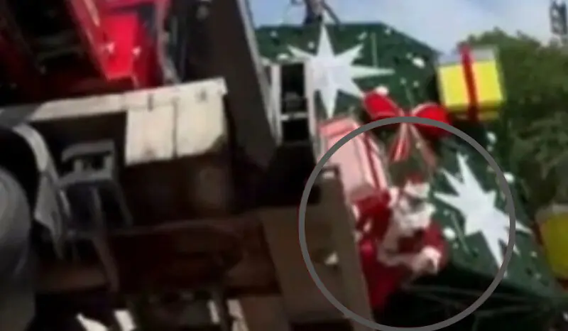 O operador do guindaste estava fantasiado de “Papai Noel” e aparece em vídeos que circularam nas redes sociais pulando da cabine para tentar se salvar.