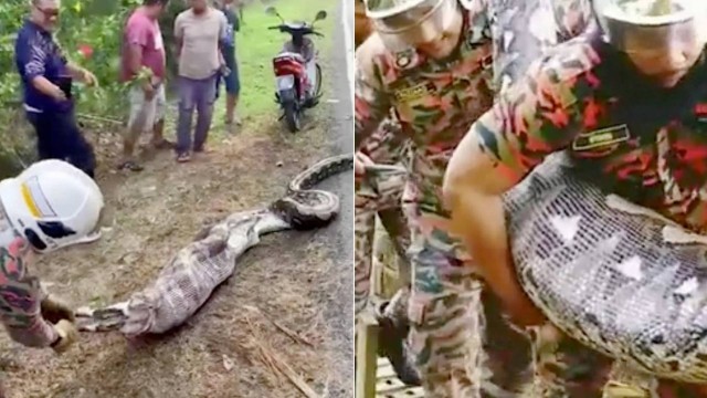 Uma enorme píton com 6 metros de comprimento e 80 quilos foi capturada no estado de Johor (Malásia) depois de engolir uma cabra inteira na quarta-feira (28/9).