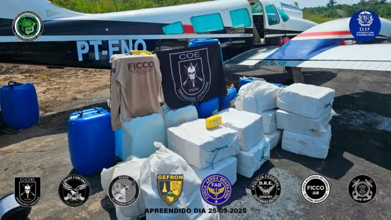 A apreensão ocorreu em uma área rural próxima ao município de Urucará, a 259 quilômetros de Manaus, após informações da Polícia Federal indicarem o uso de uma pista de pouso clandestina como ponto estratégico para armazenamento e transporte de drogas.