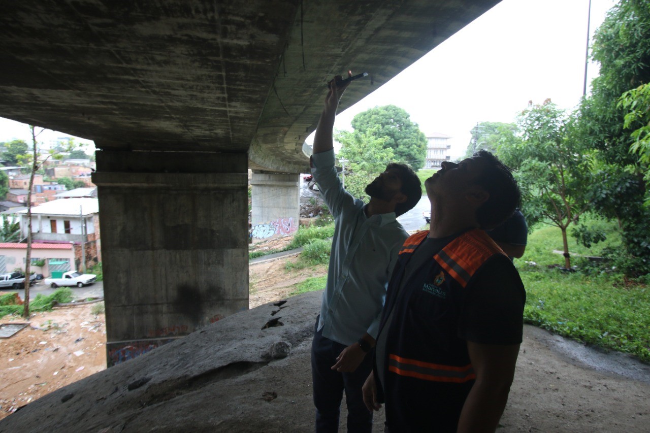 A visita técnica e análise objetiva visual de estruturas com base nos termos da norma do Departamento Nacional de Infraestrutura de Transportes (Dnit), foi realizada pelo subsecretário municipal de Obras Públicas, Madson Lino Rodrigues, em conjunto com o subsecretário municipal de Serviços Básicos da Seminf, Efrain Aragão; o superintendente da Seminf, Italo Oliveira; e o professor doutor em Engenharia de Cálculo, Francisco Anastácio Cantizani.