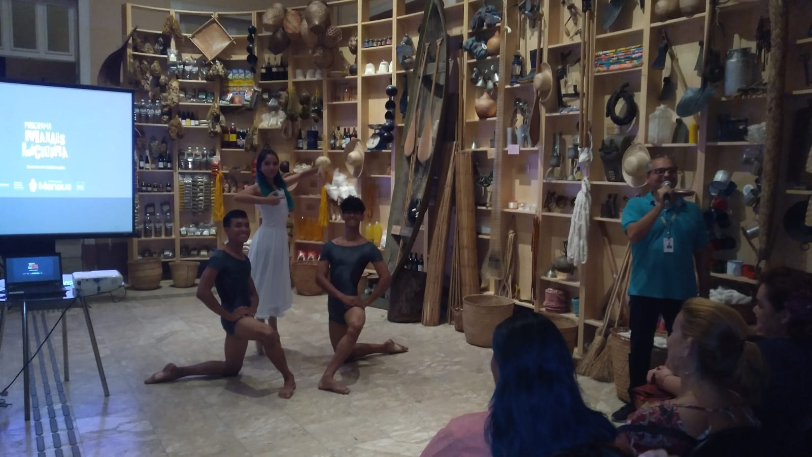 A Prefeitura de Manaus, por meio da Fundação Municipal de Cultura, Turismo e Eventos (Manauscult), via Conselho Municipal de Cultura (Concultura), fechou o calendário de cursos e oficinas nesta segunda-feira, 19/12, no Museu da Cidade (Muma). O evento foi de encerramento do programa “Manaus Pró-Cultura 2022”, em seu segundo ano de execução. Uma performance de dança e projeção de imagens na fachada do museu abriu a cerimônia, tendo como plateia a imprensa, artistas, produtores e convidados especiais.