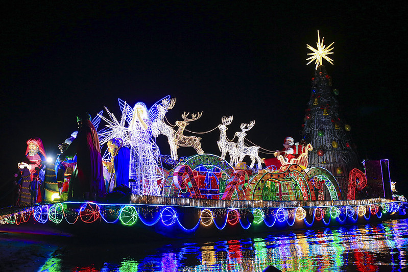 Principal símbolo do projeto “Natal das Águas – Luz da Esperança”, da Prefeitura de Manaus, o Presépio Flutuante iniciou neste domingo, 11/12, a entrega de brinquedos e cestas básicas na comunidade Terra Preta, no rio Negro. Coordenada pela Secretaria Municipal de Educação (Semed) e pelo Fundo Manaus Solidária (FMS), a balsa, que possui 50 metros de comprimento por 12 de largura, levou brinquedos, cestas básicas e muita alegria a 50 famílias da comunidade e entorno.