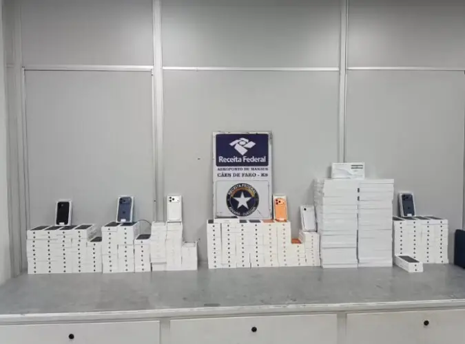 A Receita Federal apreendeu uma carga irregular de 2 mil iphones e um remédio experimental para tratamento da obesidade, usado de forma proibida para emagrecer, no Terminal de Carga do Aeroporto Internacional Eduardo Gomes, em Manaus Segundo o órgão, a apreensão ocorreu, nesta terça-feira (2), durante fiscalização aduaneira.