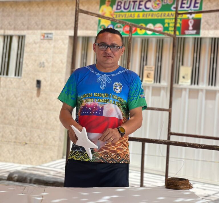 Erivelton Vieira, coordenador da ornamentação da Rua 3. Foto: Audrey Bezerra