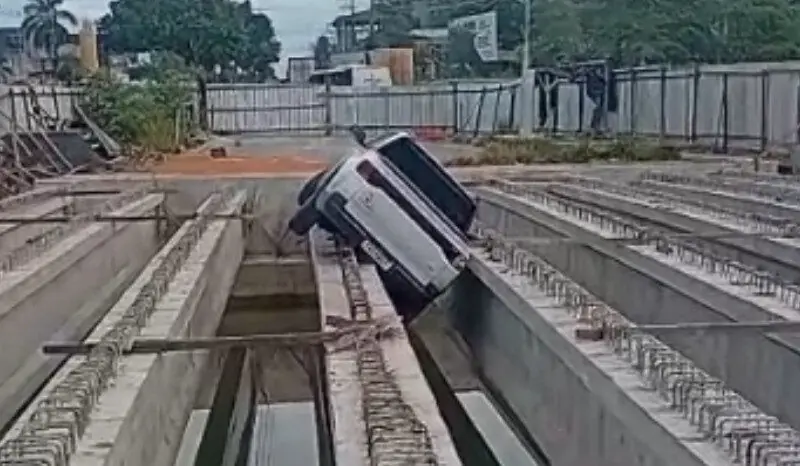 Um vídeo que circula nas redes sociais mostra o veículo dentro da estrutura da obra. As imagens teriam sido gravadas por um homem que afirmou ter sido chamado para realizar o serviço de remoção do carro.
