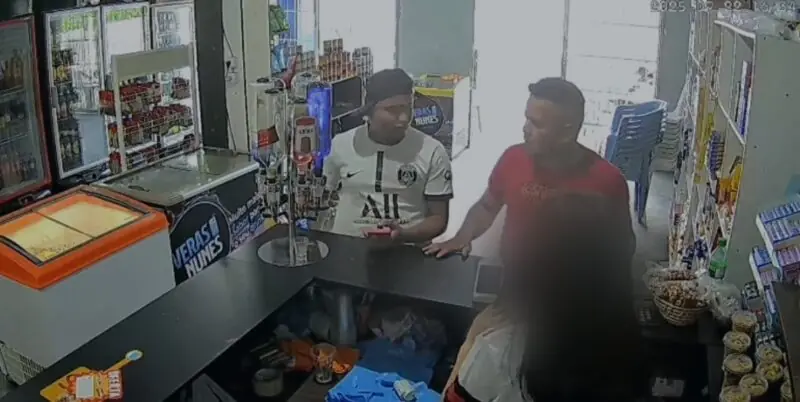 O vídeo da ação criminosa foi divulgado em aplicativos de mensagem. Nas imagens, é possível ver os criminosos entrando no local aparentando ser clientes. Eles pedem duas bebidas à atendente, que age normalmente e coloca as garrafas na sacola.