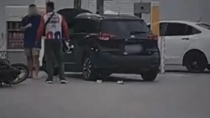 Segundo testemunhas, a discussão começou na Avenida Humberto Calderaro, quando o motorista, de camisa azul, teria fechado o motociclista de forma perigosa. Os dois discutiram enquanto trafegavam e, em seguida, pararam em um posto de combustíveis.