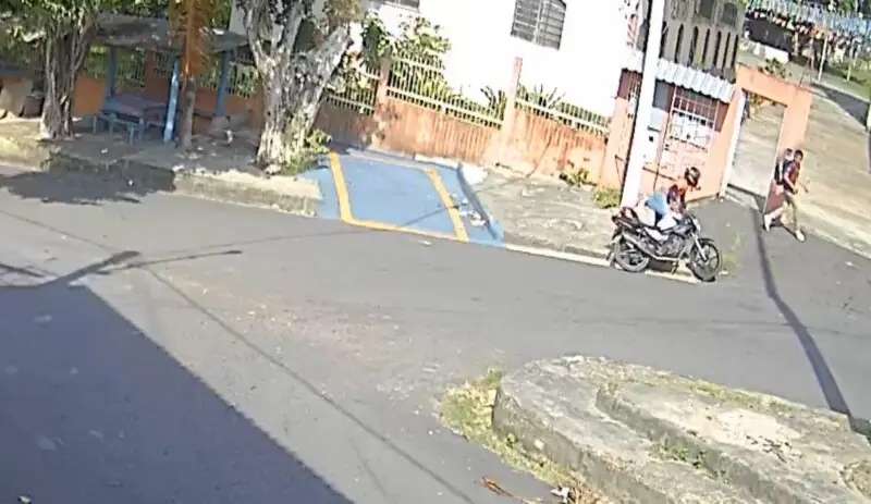 O momento da ação criminosa foi registrado por câmeras de vigilância do local. Nas imagens, é possível ver o instante em que o jovem é abordado por um assaltante em uma motocicleta.