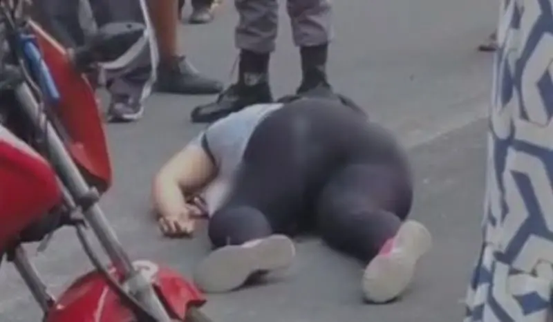 Um vídeo compartilhado em aplicativos de mensagem mostra a mulher caída no chão após ser baleada
