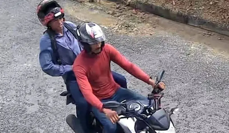 Um dos crimes mostram o momento em que o condutor da moto e seu comparsa abordam uma senhora e uma jovem que caminhavam pela via