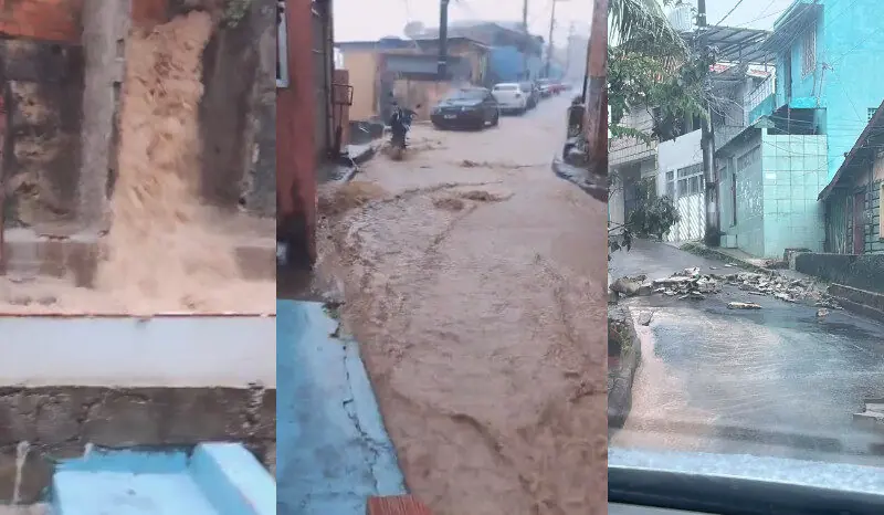 Conforme vídeo de moradores compartilhado nas redes sociais, a tubulação exposta transformou a rua em um ‘rio’ durante as chuvas desta terça. De acordo com os relatos da comunidade, a referida empresa tem utilizado a via pública para escoar toda a água acumulada em suas dependências, em vez de direcioná-la para o sistema de bueiros e galerias pluviais.